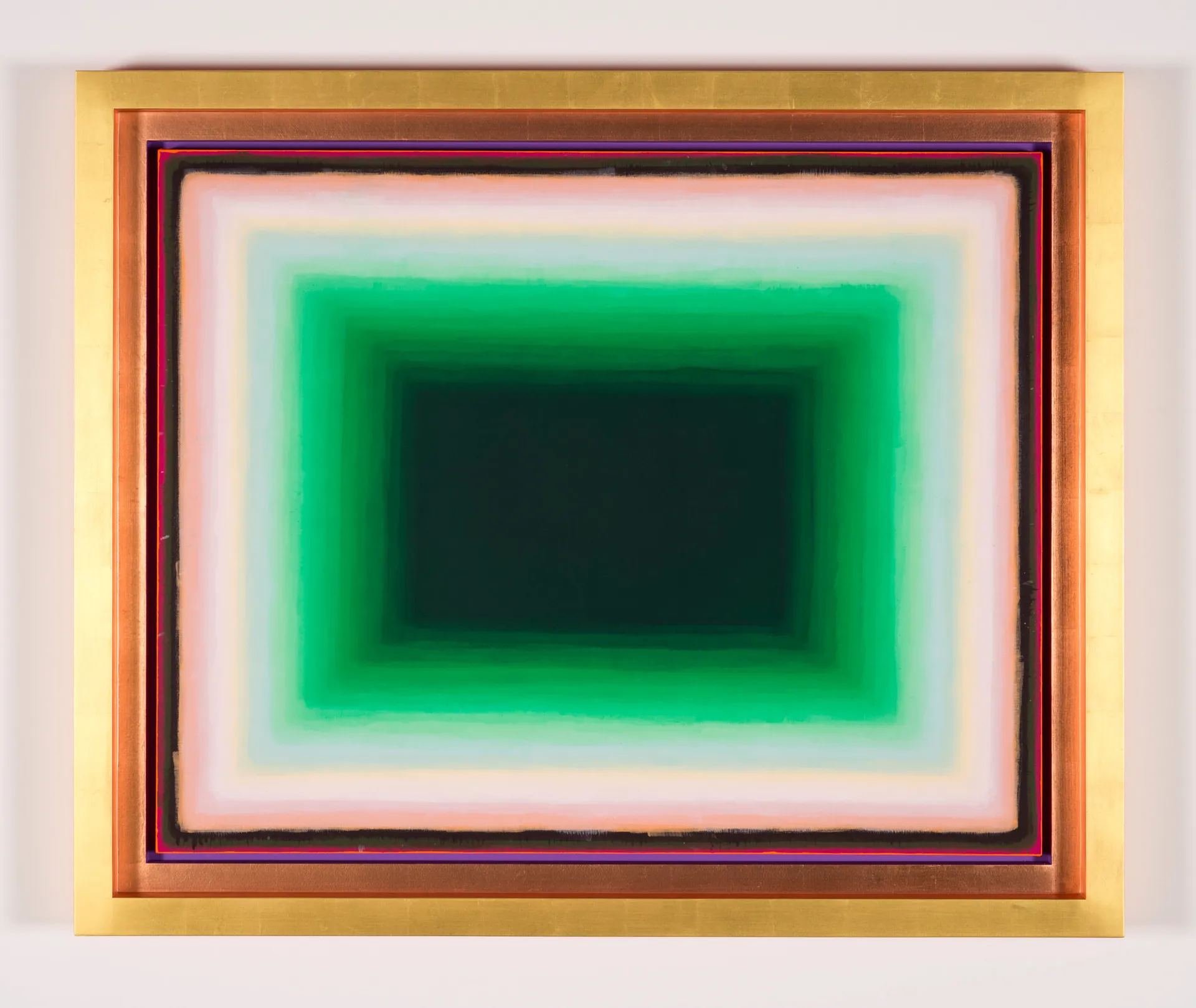 synthetic polymer, marble dust, 22ct gold leaf, copper leaf on linen and wood